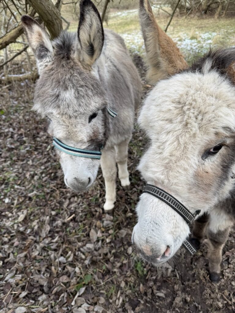 Almindeligvis kan man være heldig, når man går forbi folden, at æslerne kommer helt tæt på hegnet. De er nysgerrige dyr, men nu på søndag har alle mulighed for at komme ind i folden og klø dem lidt bag ørene.