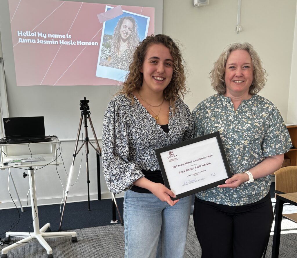 – Zonta er en international klub, som arbejder for kvinders rettigheder, det kan være i forhold til tvangsægteskaber eller voldelige parforhold. Zonta fokuserer på unge kvinder, som viser lederskab og har internationalt perspektiv, så det passede meget godt til mig, forklare Anna Jasmin Hasle Hansen.