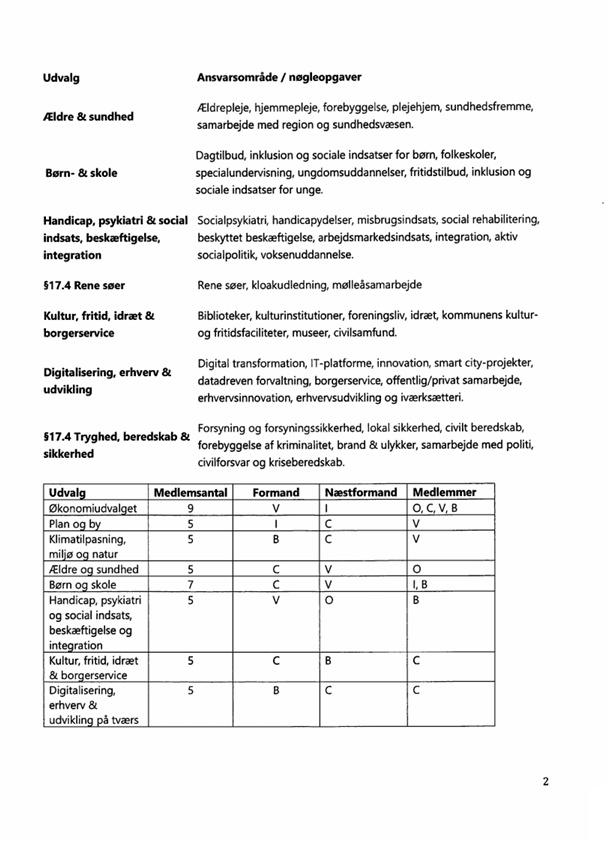 Aftalen gjorde Nicolai Bechfeldt til borgmester og gav Venstre en formandspost, altså en bedre aftale end konstitueringen med S, SF og Ø. Tine Hessner skulle være 1. viceborgmester. Konservative stod til tre formandsposter. Liberal Alliance stod til formandsposten for Udvalget for Plan og Byudvikling. Lene Karmisholt fik næstformandsposten i Handicap, Psykiatri, Social og Beskæftigelse.