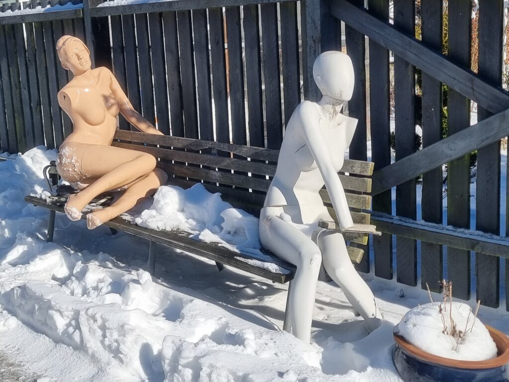 Tirsdag morgen var en af kunstneren Bakaos mannequinerdukker forsvundet. Den havde ligget på bænken i indkørslen i flere år sammen med en anden dukke. Men pludselig var den væk