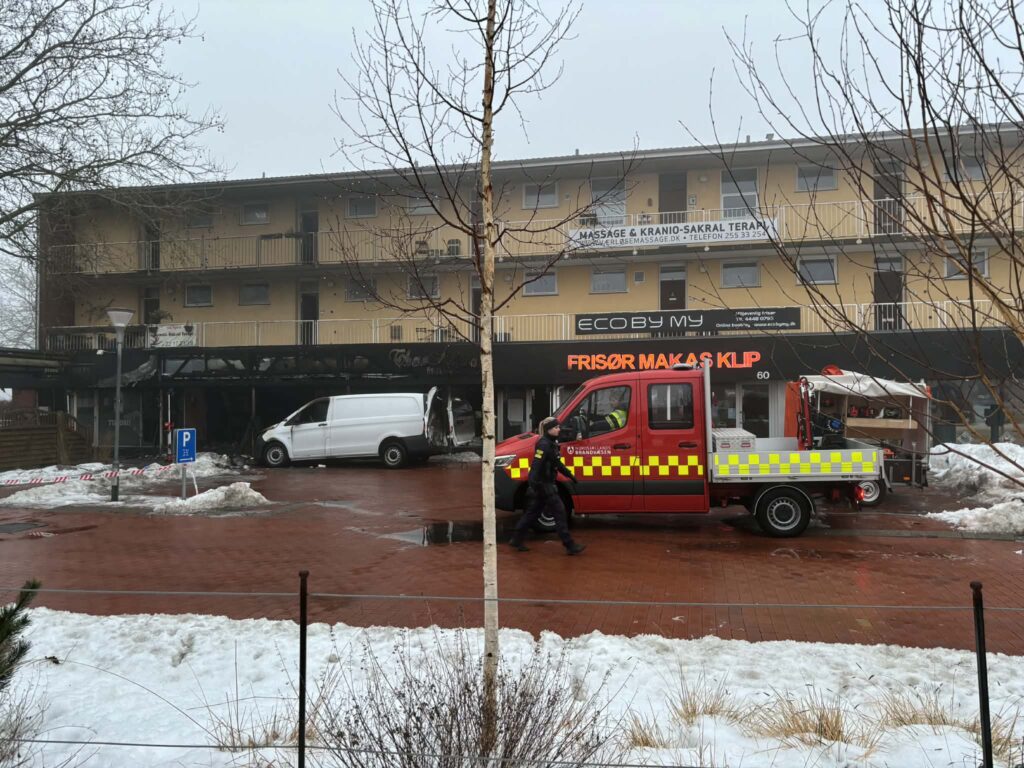 Natten til mandag kl. 1.30 gik alarmen. Brandvæsenet og politiet rykkede ud til Værløse Bymidte.
