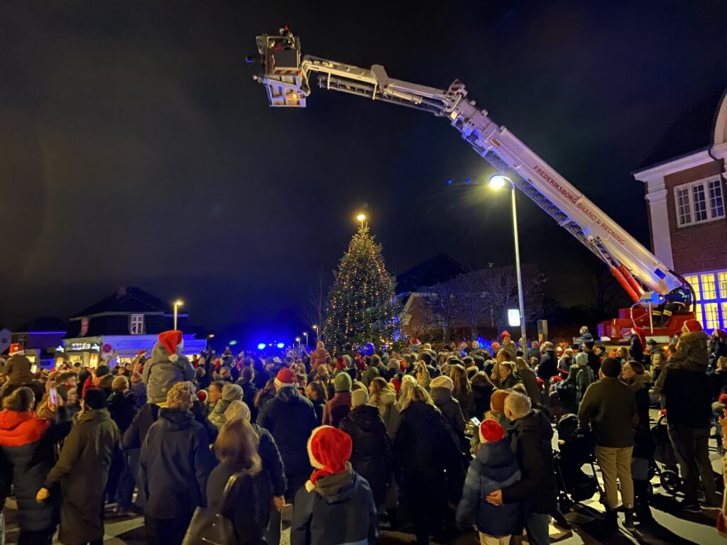 Træet tændes af julemanden, som kommer kørende i en brandbil fra Station Farum. Der vil som altid blive sunget en julesang og mon ikke der igen i år er slikposer til børnene.