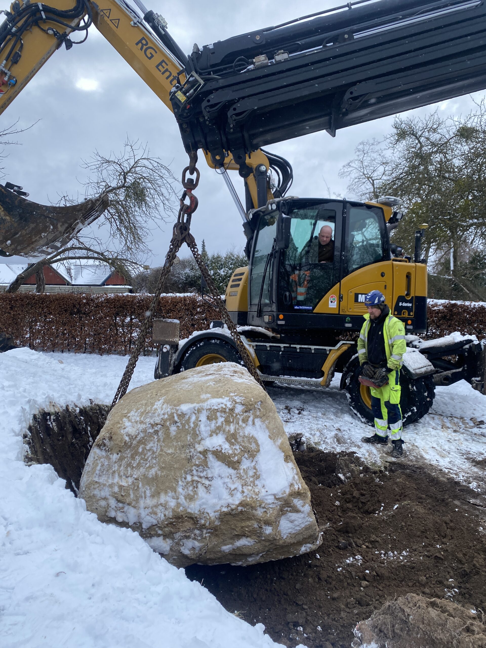 I forbindelse med fjernvarmearbejdet stødte entreprenøren Aarsleff på den besværlige sten, som det ikke var sådan at komme rundt om, men den skulle væk for at gøre plads til fjernvarmerørene.