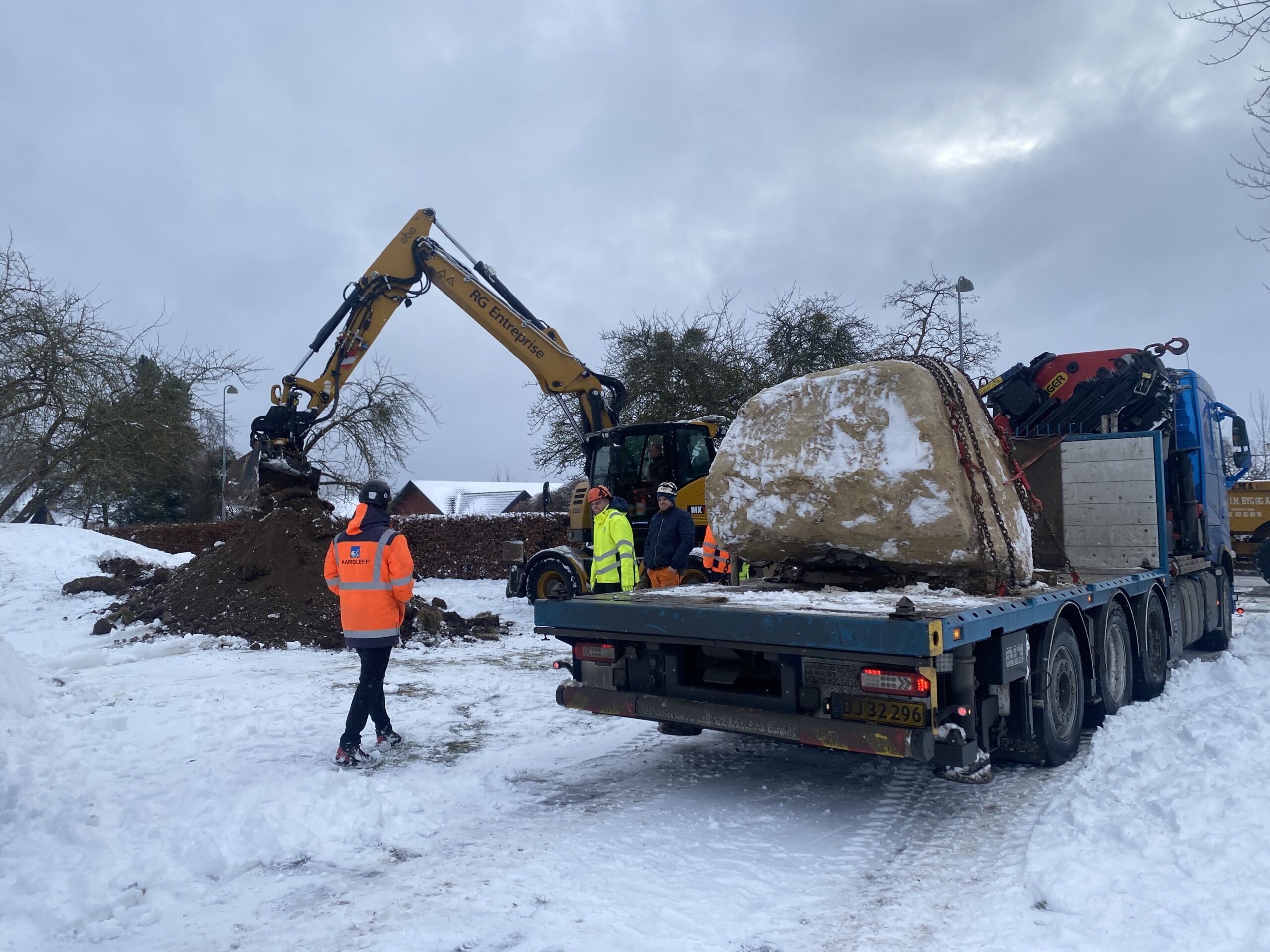Den ni tons tunge sten blev løftet op og placeret lige ved siden af vejbanen.