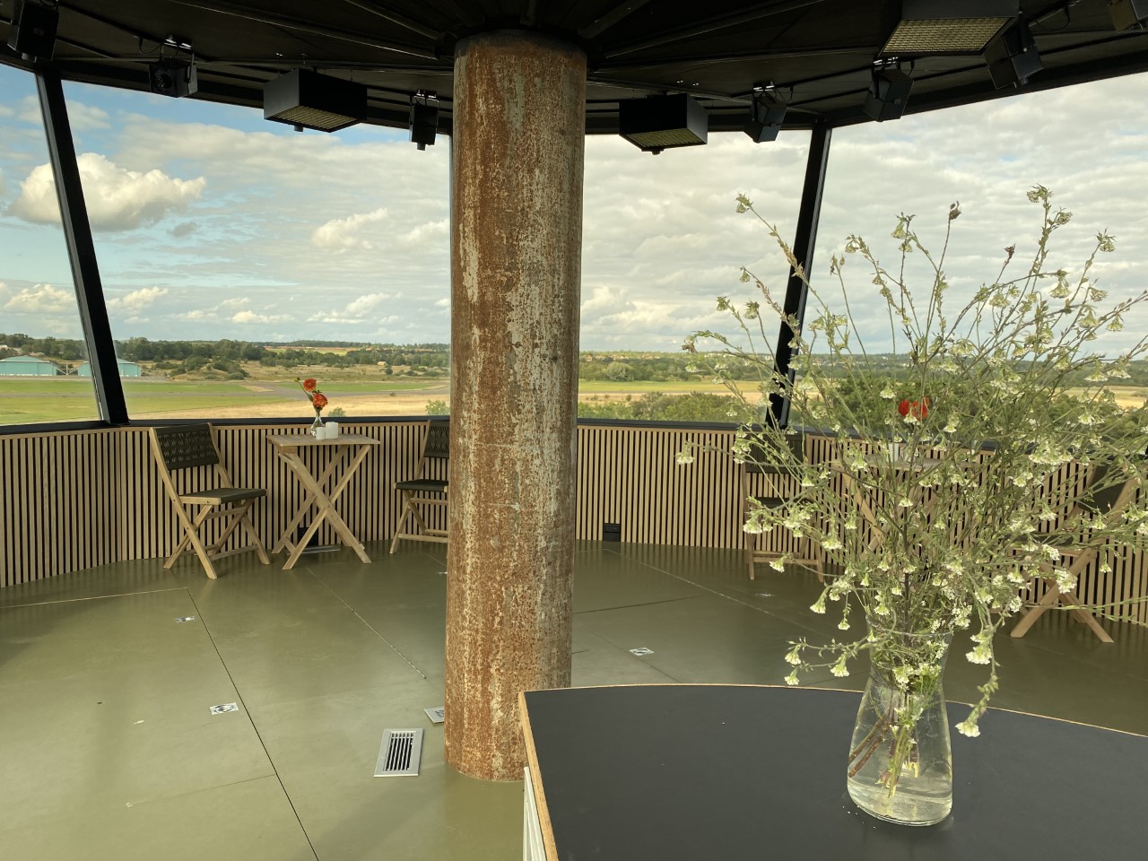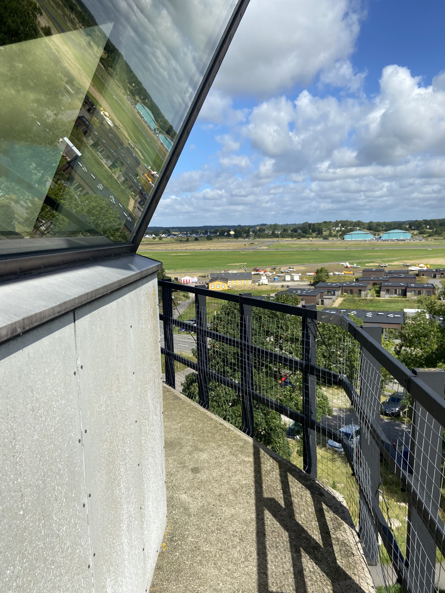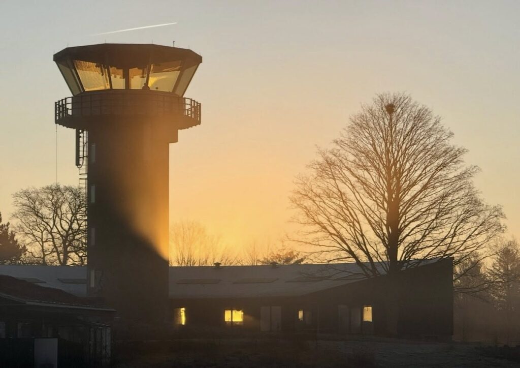 Tårnet var oprindelig planlagt til at blive placeret nord for banen, ved den daværende Operationsafdeling, men her protesterede flyvelederne på grund af alvorlige solgener i forårs- og efterårsperioderne, som man havde oplevet på jyske stationer.