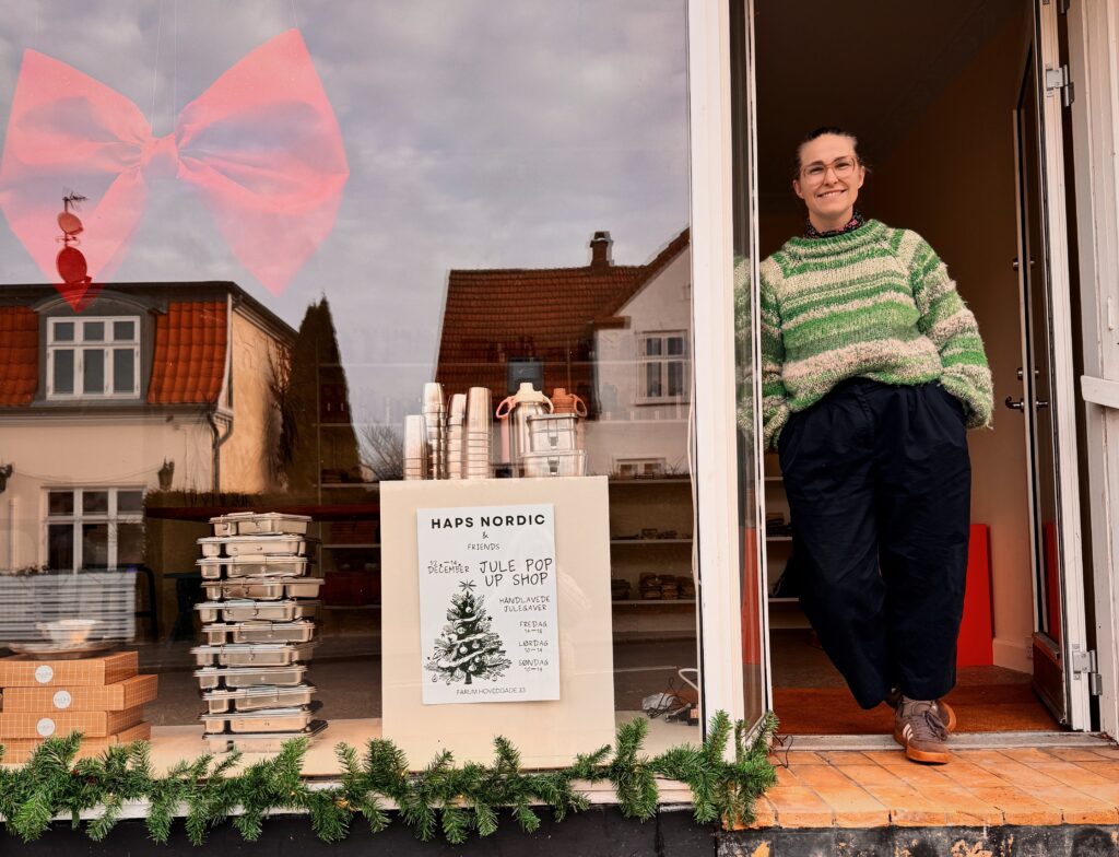 Farum Hovedgade får fredag til søndag i denne uge en ny attraktion. Melis Wilkenschildt fra Haps Nordic åbner dørene I Farum Hovedgade 33 for at julepop up-marked med kunsthåndværkere, men også virksomhedens egne produkter.