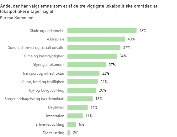 I Furesø scorer punktet ‘Styring og økonomi’ markant højere end på landsplan. 27 procent vil prioritere dette punkt i Furesø Kommune. På landsplan er tallet 20 procent.