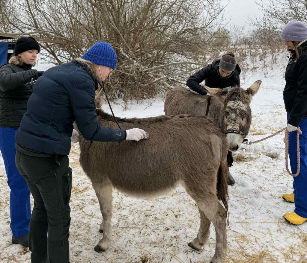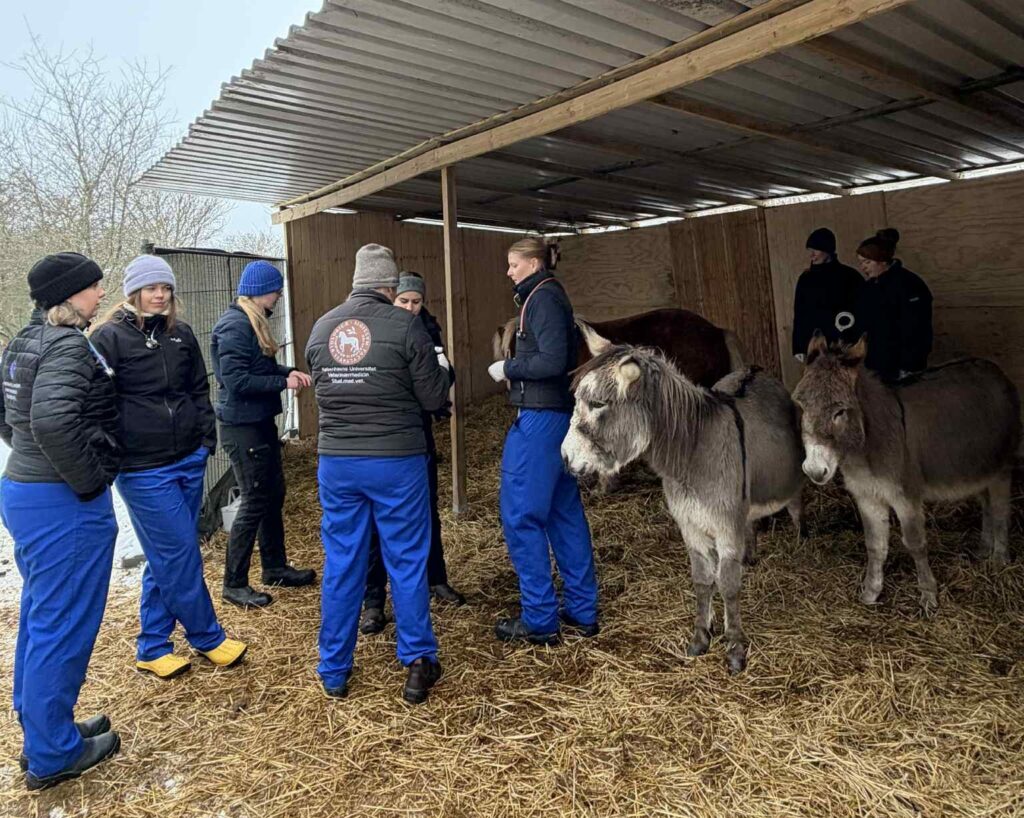 Tirsdag den 10. februar var det så planen, at to erfarne dyrlæger skulle komme forbi, men de tog et hold på seks dyrlægestuderende med og ankom i to minibusser.