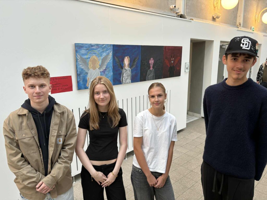 – Hovedidéen med værket var at lave en engel med godt og ondt og noget imellem det. Værket viser, at der er noget ondt i det gode og noget godt i det onde, fortalte Charlie, da han præsenterede værket, som er skabt sammen med Alicia, Alma og Benjamin.