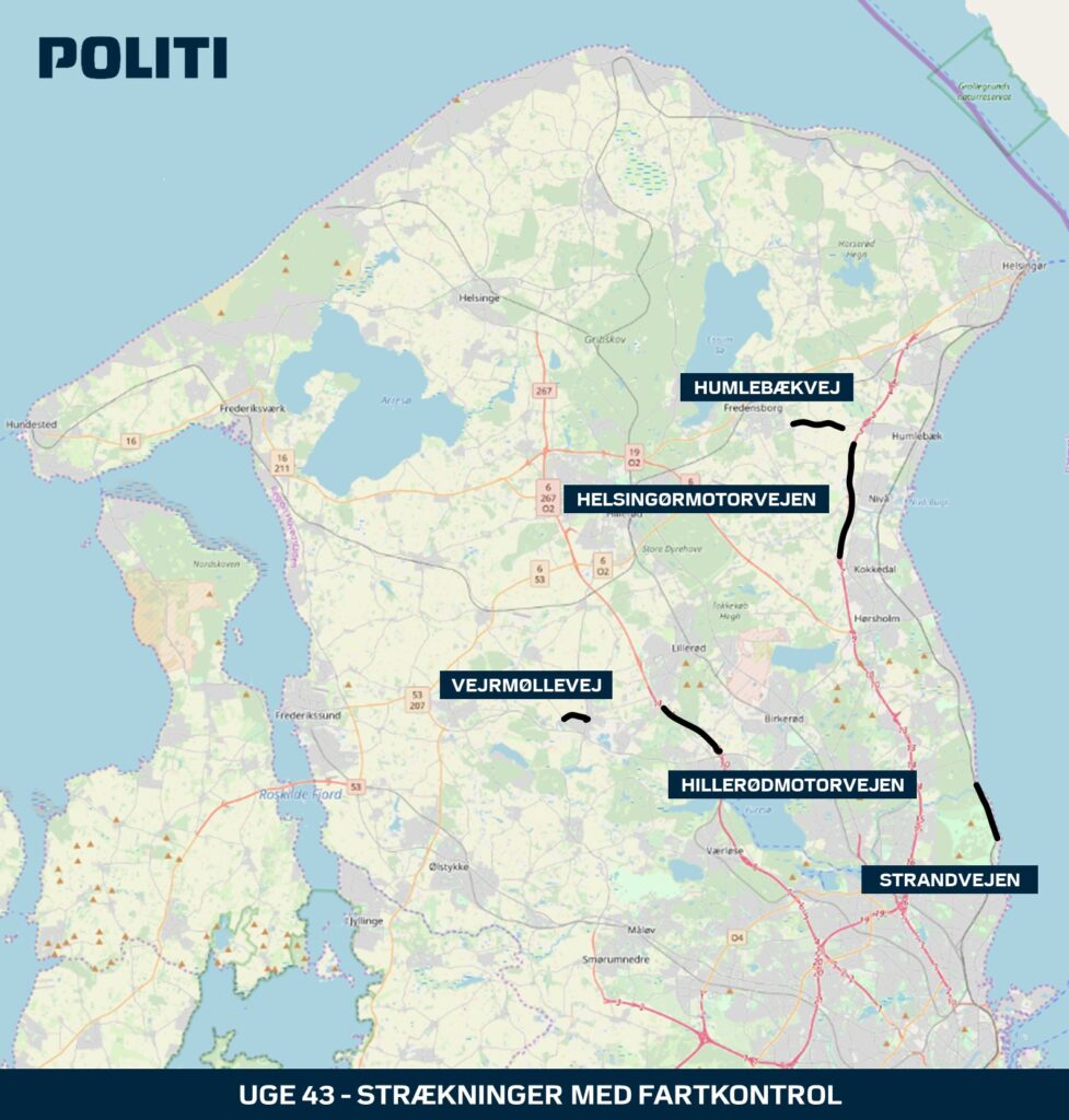 Denne strækning udpeges som et af fem fokuspunkter i uge 43. Nordsjællands Politi oplyser om en del af de kommende automatiske trafikkontroller i forhold til forebyggelse af fartoverskridelser.