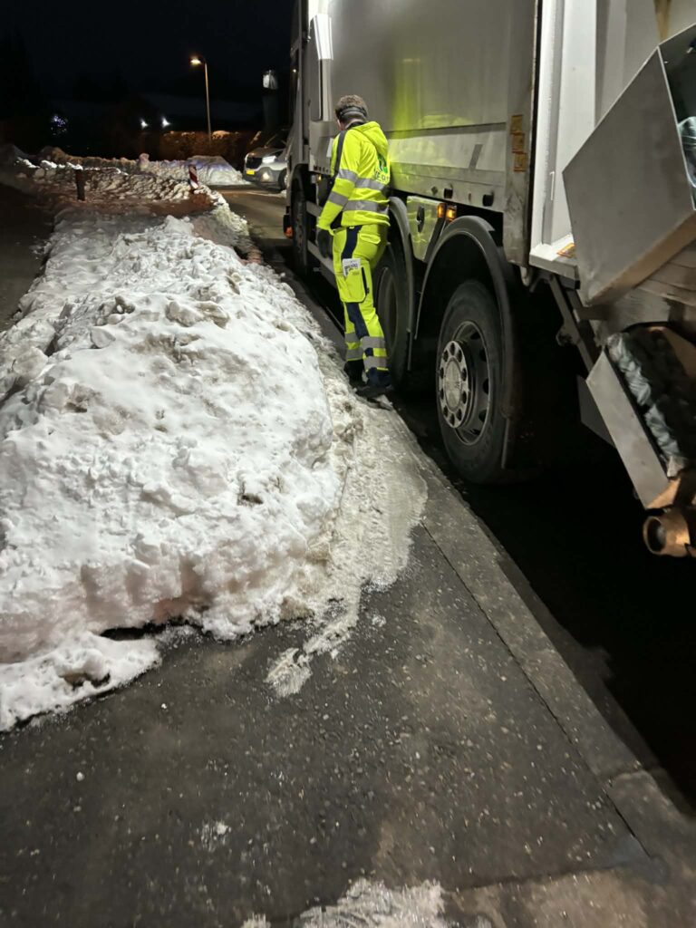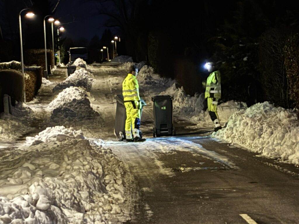 – Stikvejen får ikke hentet skrald, fordi der ikke er ryddet bredt nok. Normalt bakker vi hele vejen ind, men det kan vi ikke pga. forholdene, siger Mikkel og fortsætter: