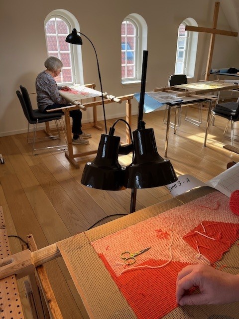 Men når der skal broderes, skal der være ordentlig lys. I den forbindelse rettede Slangerup Kirke henvendelse til Spejdernes Genbrug, som donerede tre genbrugs-standerlamper, der skal sikre ordentlige arbejdsforhold for de omkring 40 frivillige brodøser.