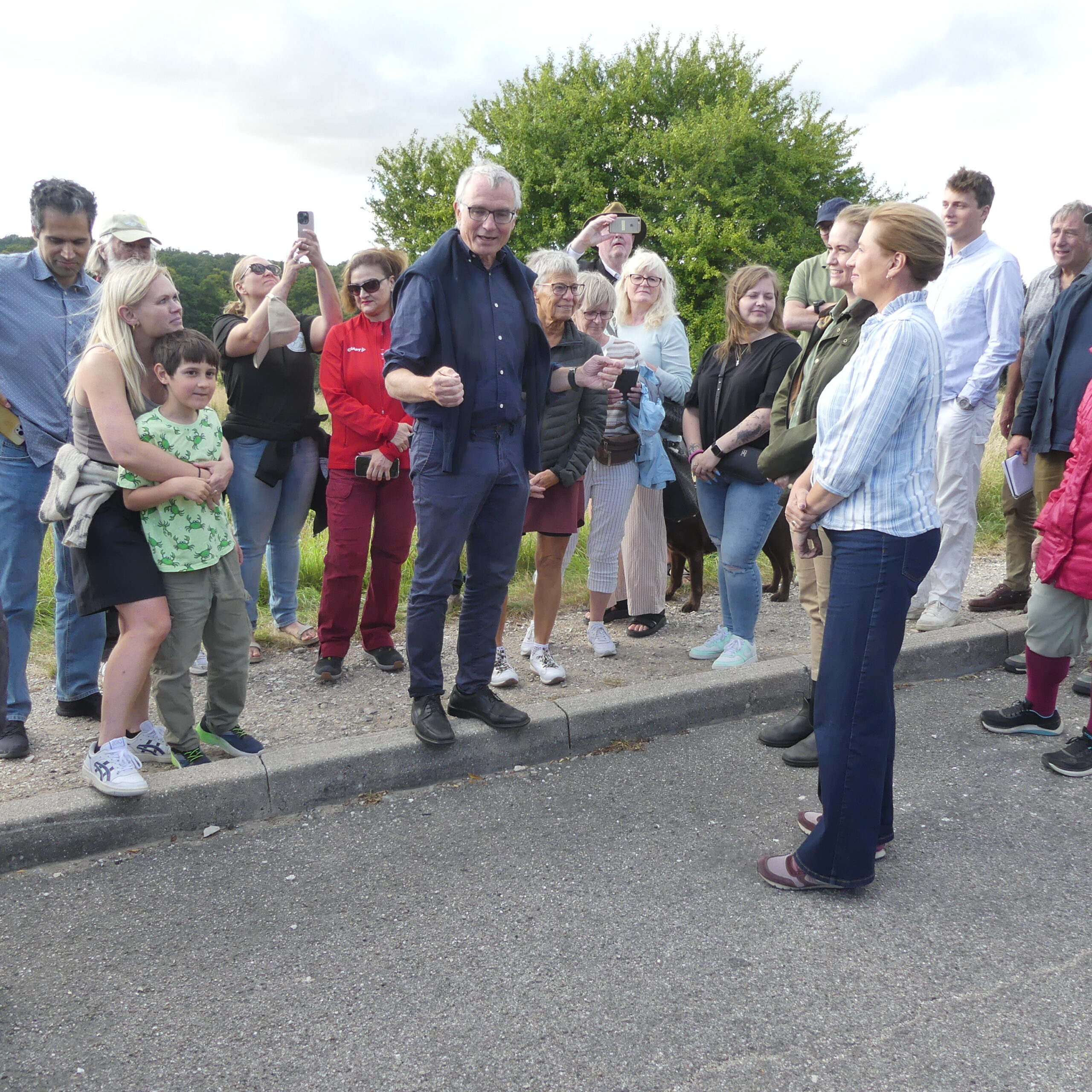 Med tre måneder til kommunalvalget er statsminister Mette Frederiksen i gang med en turne rundt i landet. Torsdag eftermiddag kom hun til Baunesletten i Værløse, hvor hun blev budt velkommen af sin partikollega, Ole Bondo Christensen, borgmester i Furesø Kommune, og Maria Reumert Gjerding, Præsident for Danmarks Naturfredningsforening.