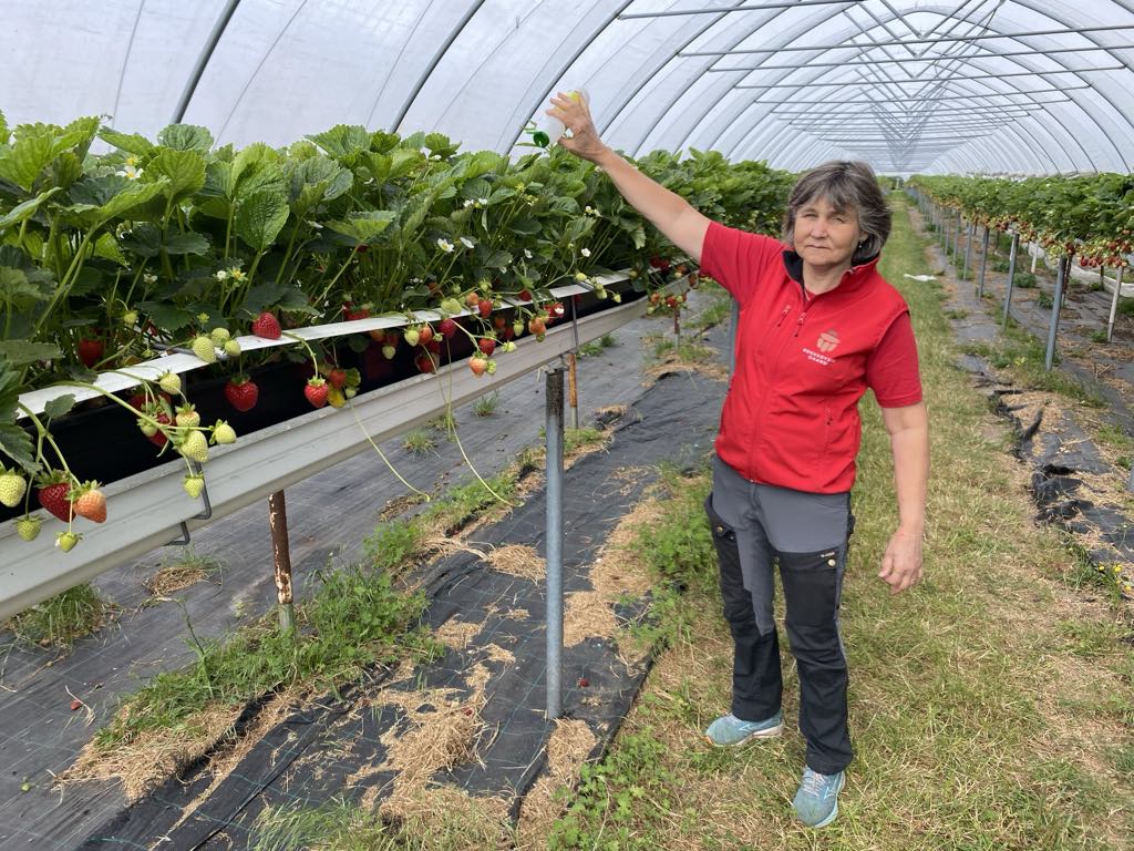 – For dem er det vildt eksotisk at plukke bær. Især de friske jordbær er herlighedsfrugt for japanerne, forklarer Lisbeth Toft Christensen.